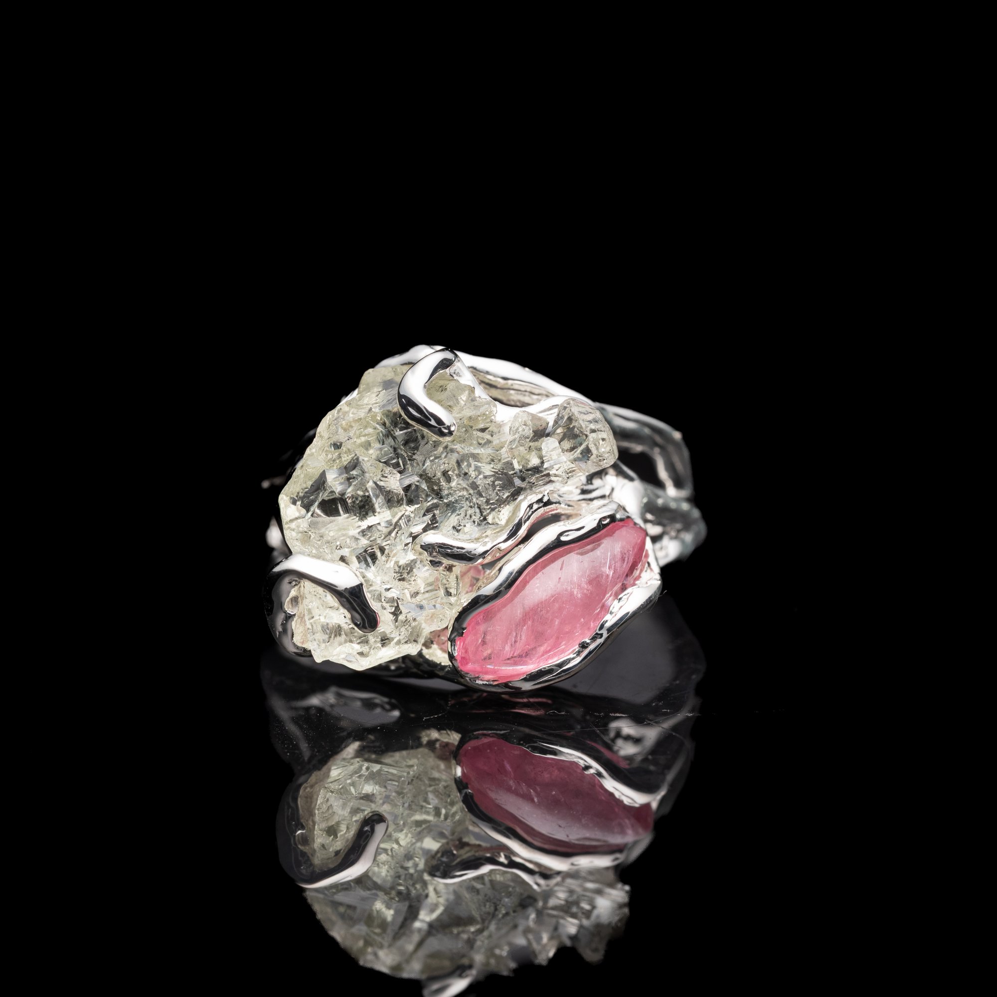 Каблучка з геліодором та рубелітом