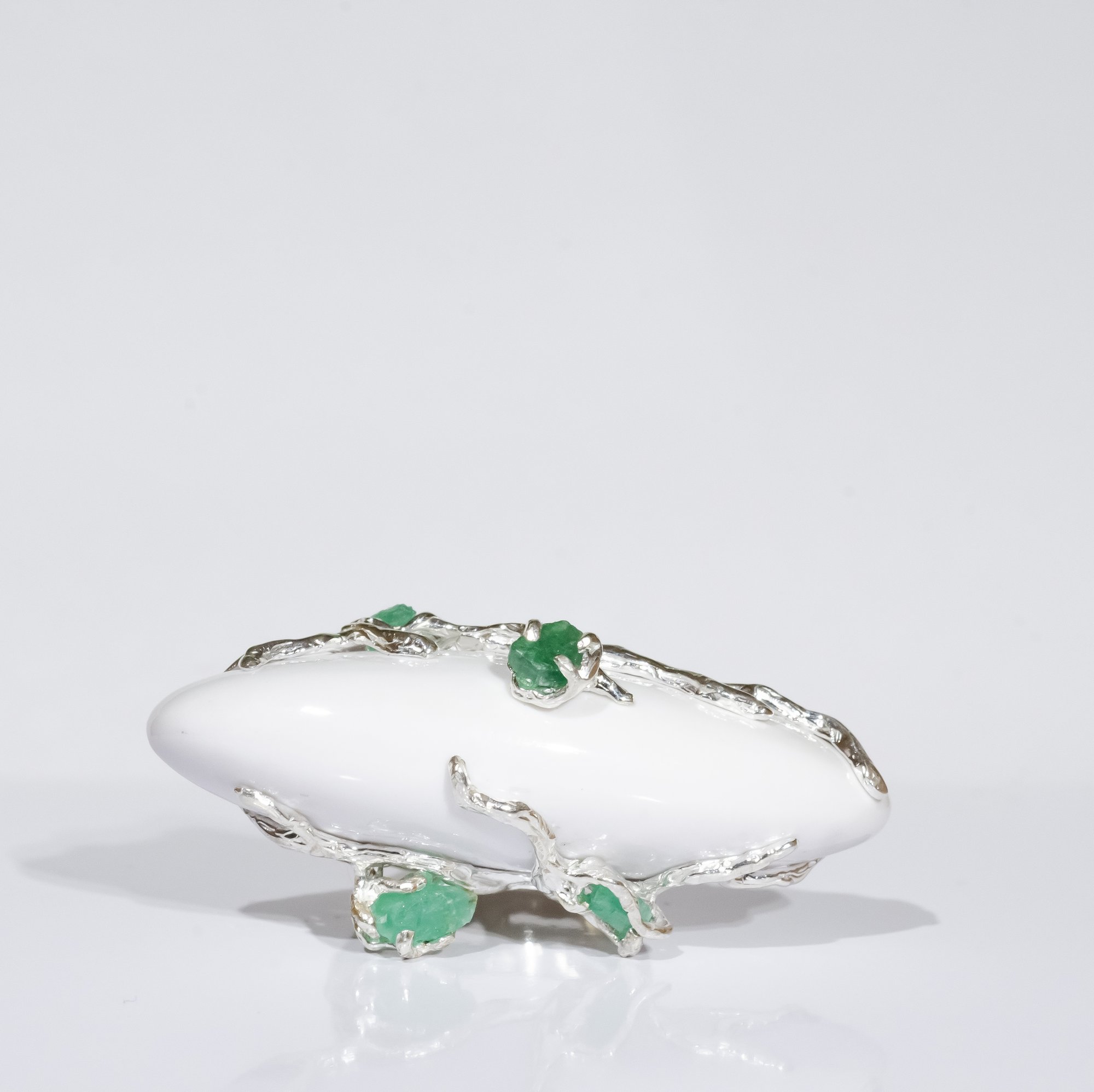 Каблучка з кахолонгом та смарагдами