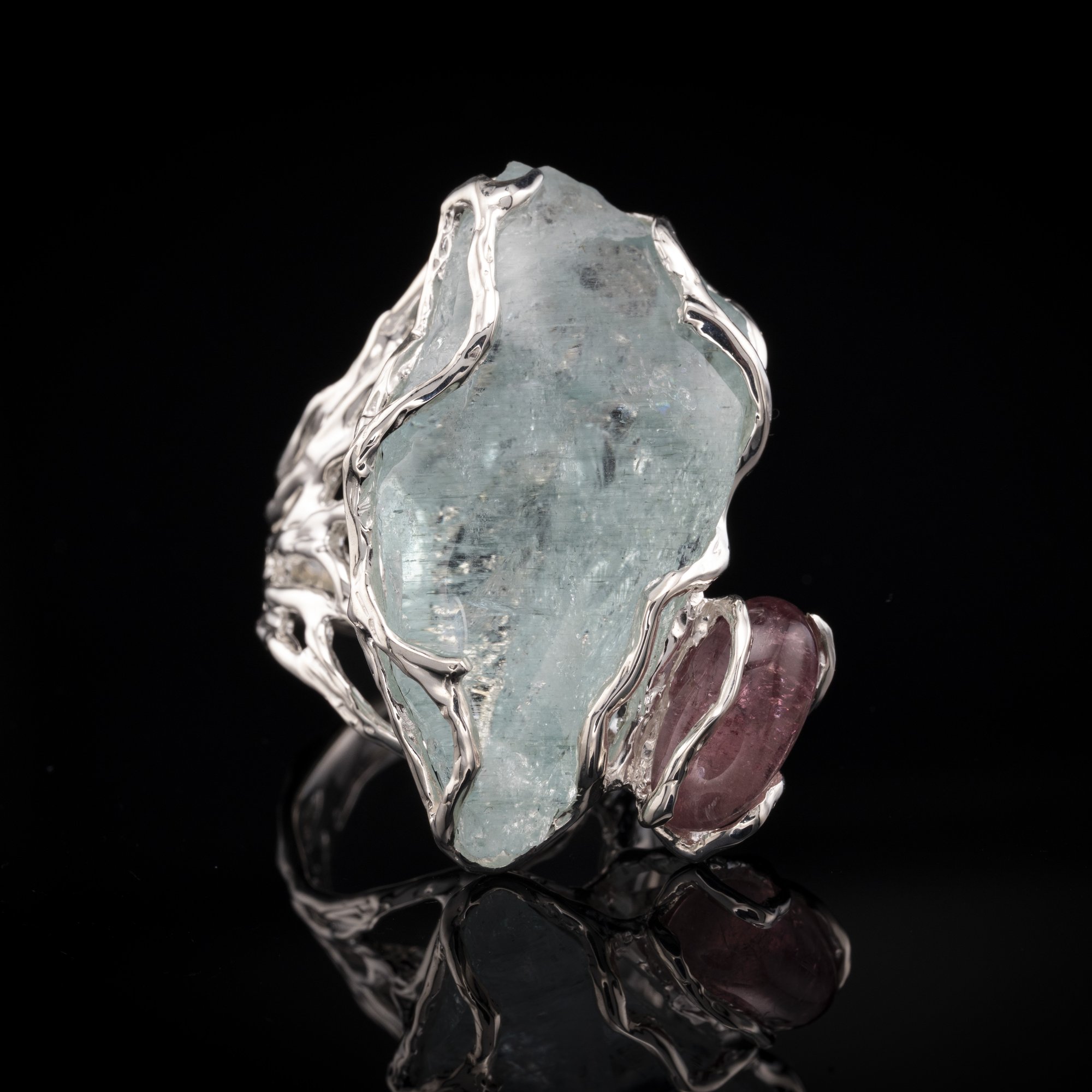 Каблучка з аквамарином та рубелітом