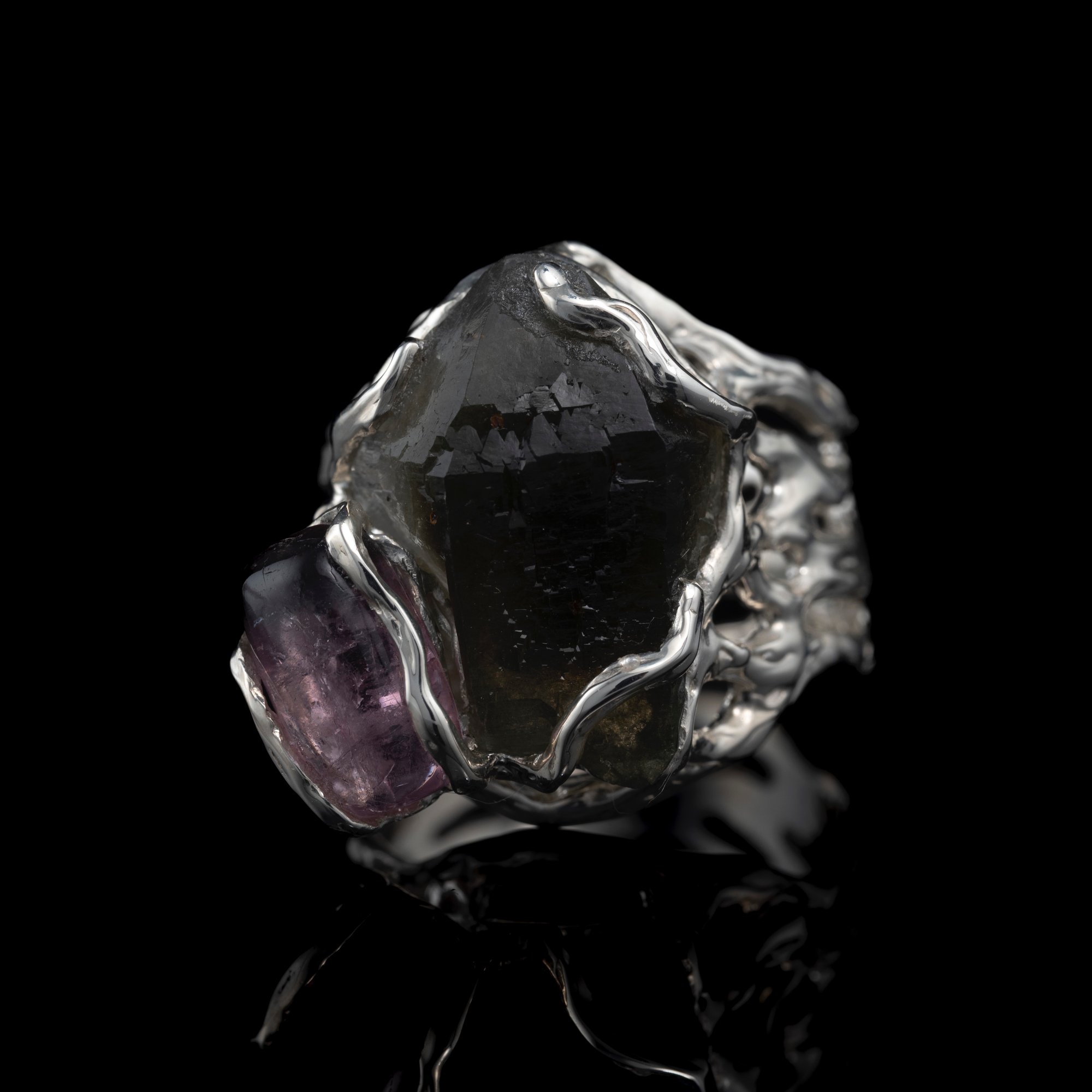 Каблучка з кварц празем та рубелітом