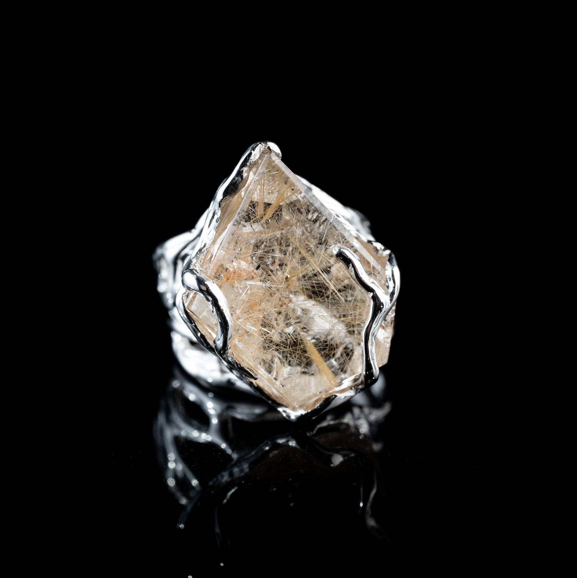 Каблучка з рутилованим кварцом #687000 | rar jewellery