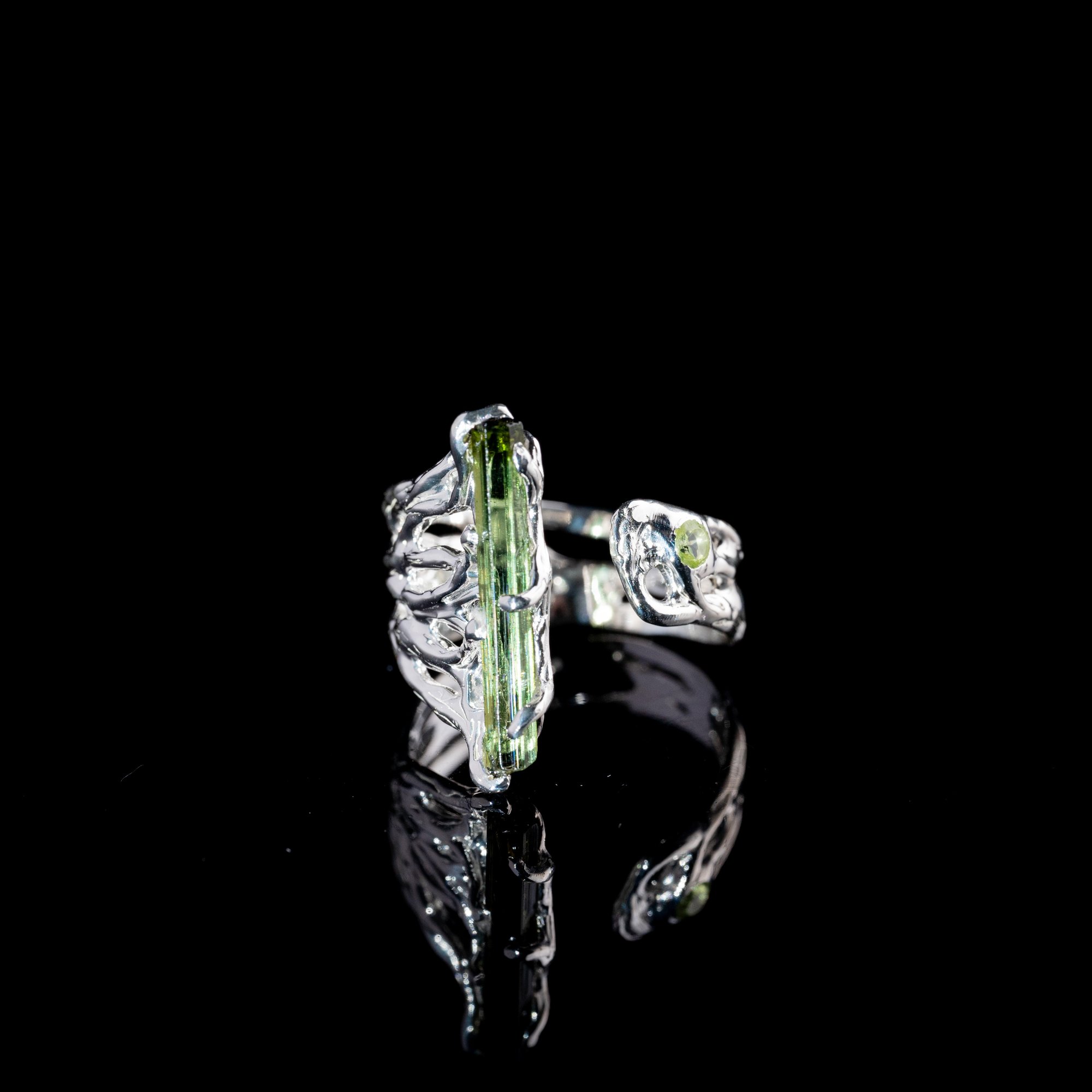 Каблучка з турмаліном та хризолітом