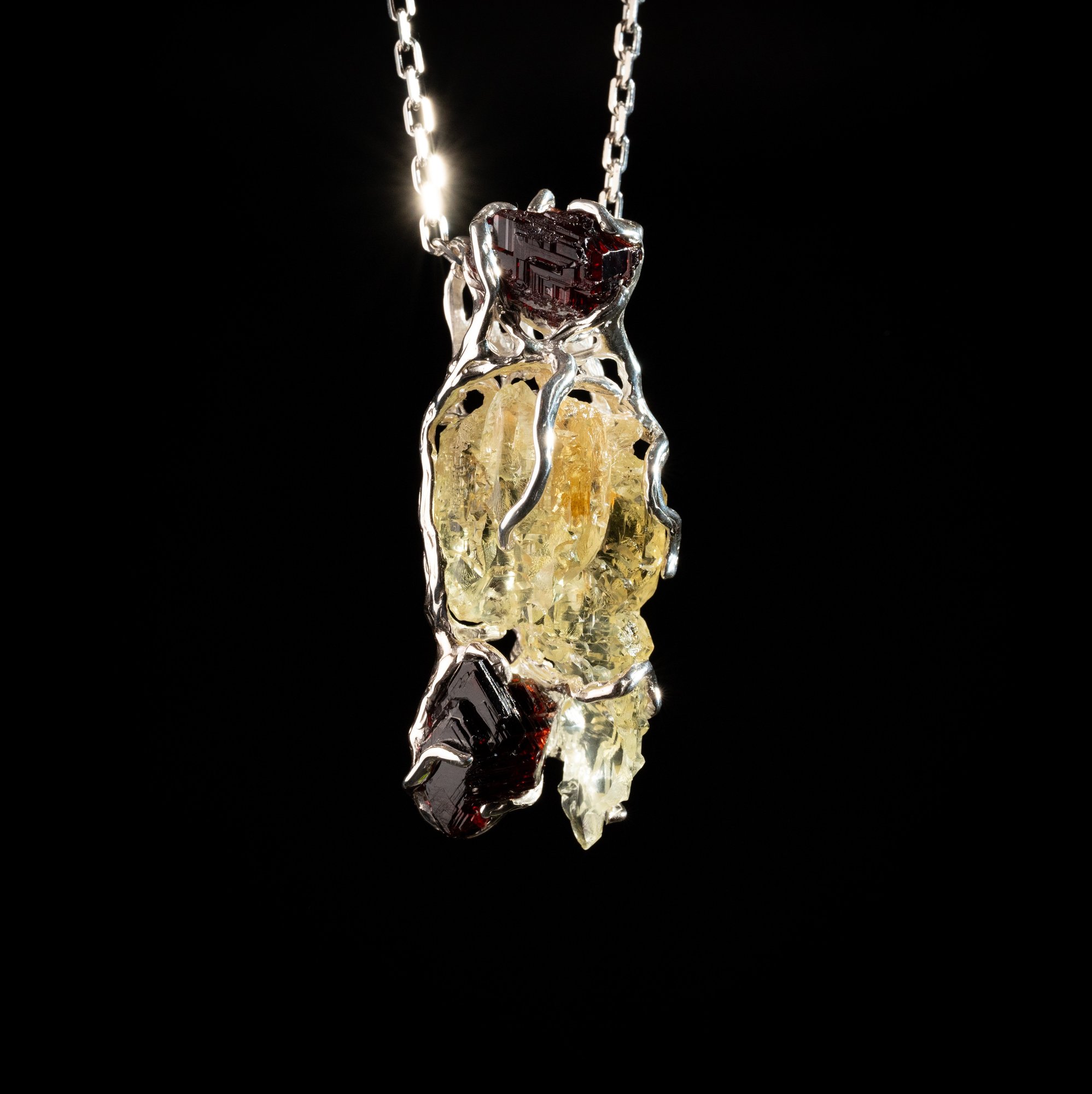 Кулон з геліодором та спесартинами