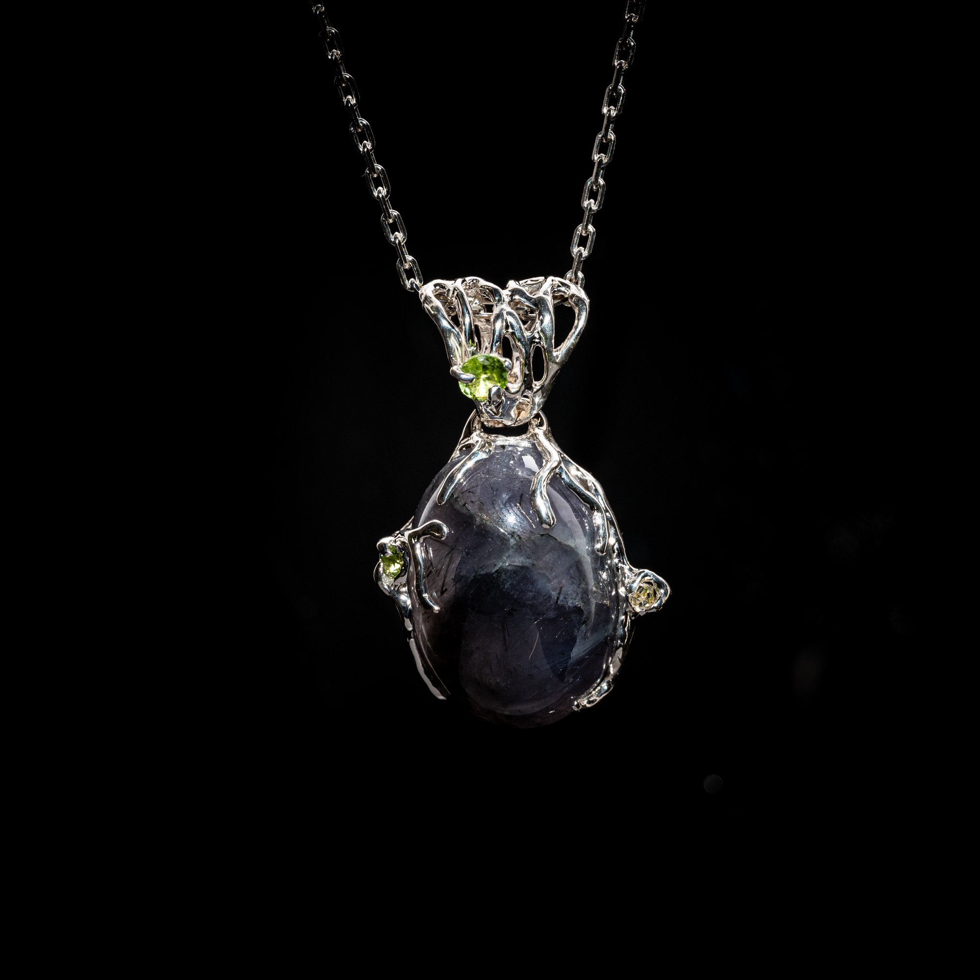 Кулон з іолітом, хризолітами та нафтовим кварцом