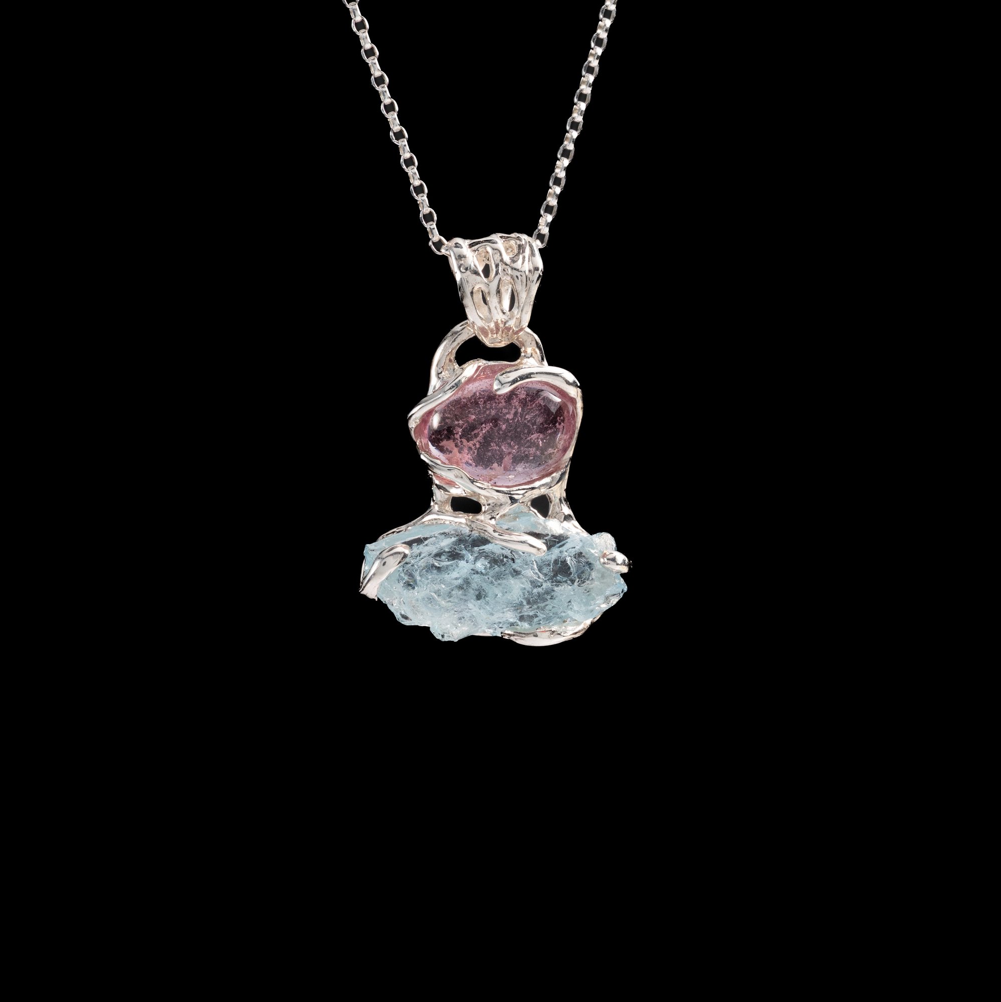 Кулон з турмаліном та аквамарином