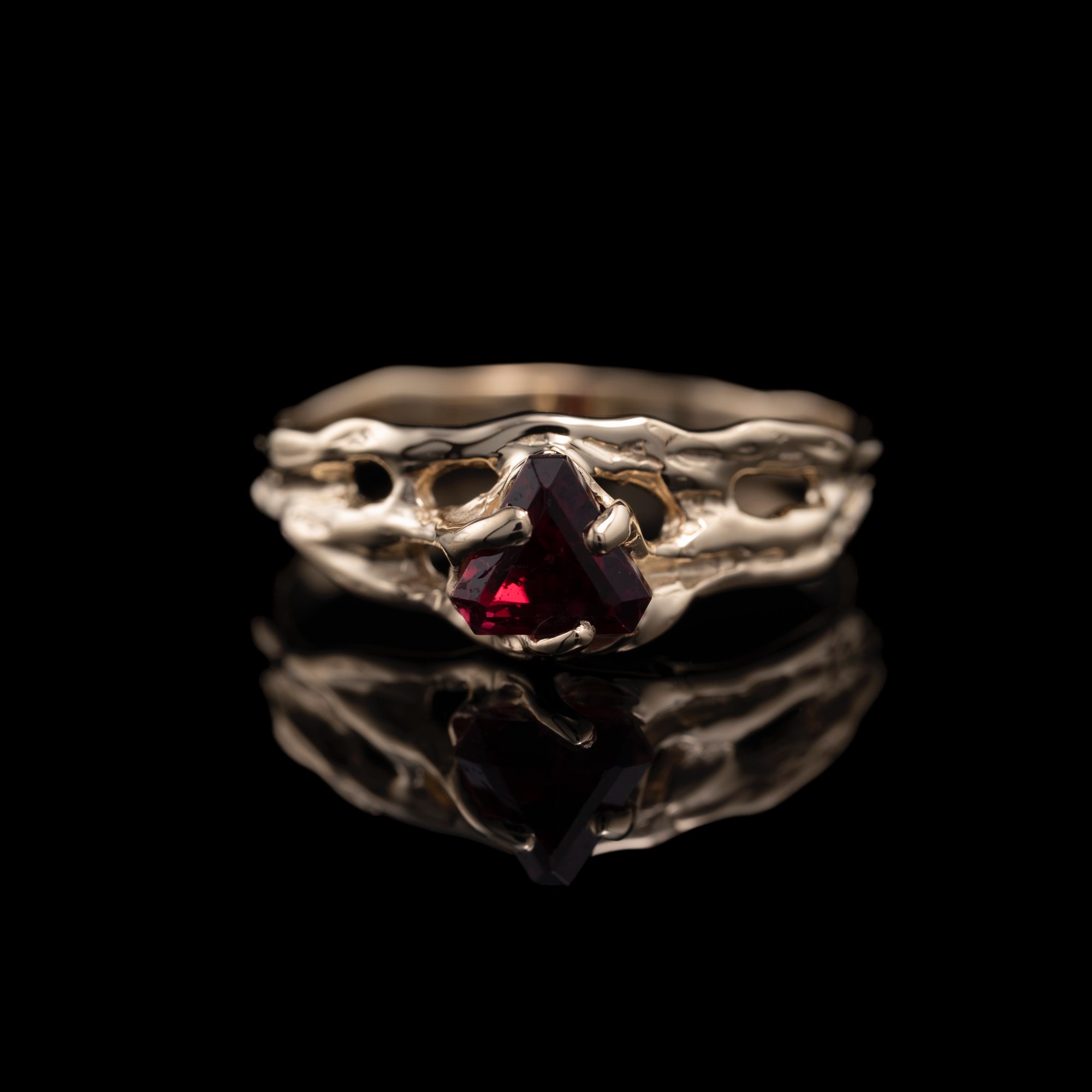 Гранат народжується переважно в метаморфічних та деяких вивержених породах, часто утворюючи красиві, добре сформовані кристали. Його знаходять поряд з такими мінералами, як кварц, польові шпати та слюди. Цей камінь цінується не лише за красу, але й за практичність. Завдяки своїй значній твердості (6.5-7.5 за шкалою Мооса), гранати є досить стійкими до подряпин, що робить їх чудовим вибором для ювелірних виробів щоденного носіння. Їх привабливий скляний або смолистий блиск додає прикрасам елегантності. Як колекційний мінерал, гранат цінується за багатство кольорів, форм кристалів та різноманіття видів. Його природна краса та історія роблять кожен екземпляр унікальним.